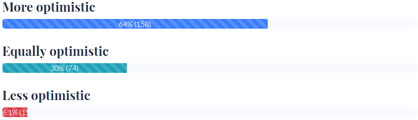 Over 90% of respondents are equally or more optimistic about the outlook for offshore drilling rig demand for the next two years compared to one year ago.