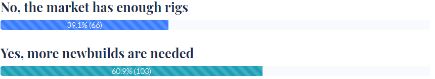 Over 60% think that there’s a need for more newbuild harsh environment semisubs as the market may be undersupplied over the next five years.