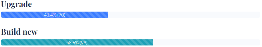 When asked if they would rather upgrade an old rig or build a new one (assuming 5-year project economics were similar), over 40% would still choose to upgrade.  Although the majority would prefer to build a new rig, the large proportion of “upgraders” indicates that uncertainty in the industry’s long-term outlook remains.