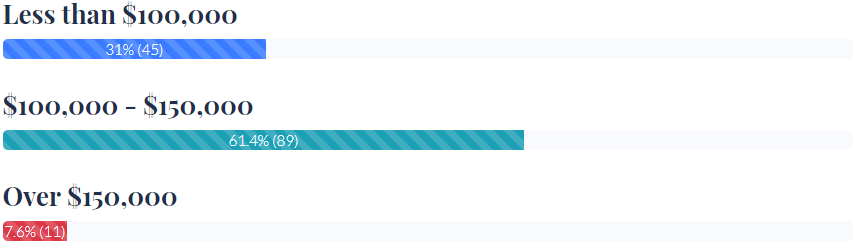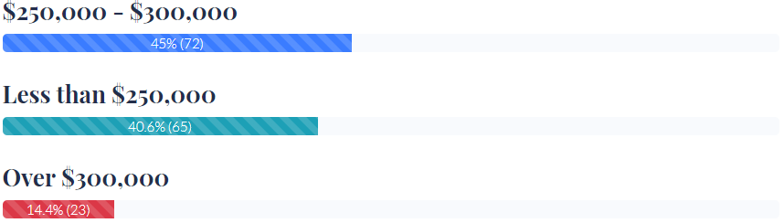 Nearly 60% of respondents think dayrates for harsh environment semisubs will be in the $350,000–400,000 range in one year.  And over 30% don’t even think they’ll make it to $350,000.
